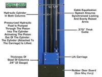 The Atlas PV-10PX incorporates a padded shut-off bar to protect the top of the vehicle from contacting the crossbar. The carriages are equipped with "padded" protective (thick rubber) covers to help prevent the vehicle's doors from damage if opened into the columns or carriages.