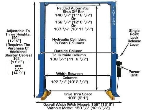 The commercial grade Atlas PV-10PX two post lift includes some modifications and improvements that make it one of the most popular above ground lifts in the world.