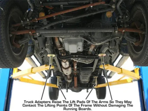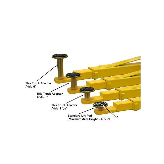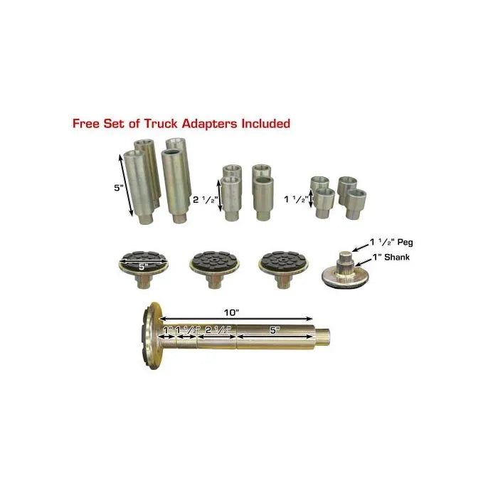 This lift comes standard with a twelve piece truck adapter set. The twelve piece truck adapter set offers many more lift height combinations than standard two piece truck adapter sets.