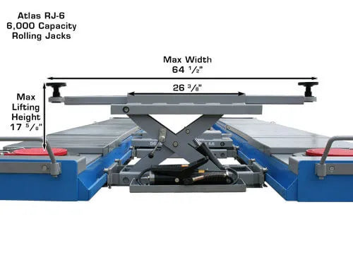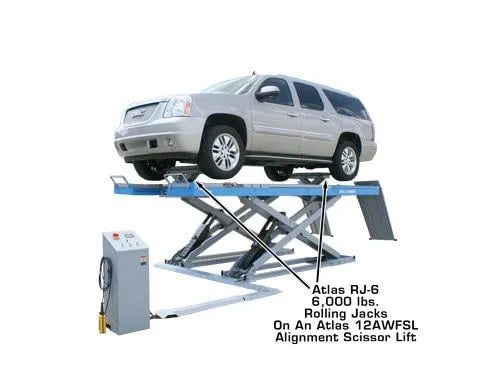 Whether you are fan of the Atlas "wheels free" system or enjoy the versatility offered by the rolling jacks, ASEDeals has the solution for you. Many customers buy the alignment racks with the "wheels free" option and also buy one or two of the Atlas RJ-6 rolling jacks so they are prepared for any vehicle that needs wheel service.