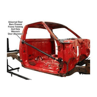 When used during a job, these door bars help maintain door alignment and prevent the "twisting" of a vehicle frame. These door bars are not powder coated. The universal door bars are easy to use, simply extend the bars to the proper length and either weld or bolt them into position.