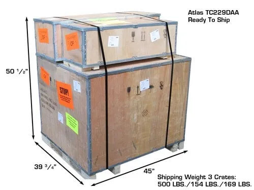 The Atlas TC229DAA wheel clamp tire changer is the Atlas TC229 wheel clamp tire changer that has been equipped with the pneumatic Atlas LH assist arm plus the Atlas RF assist arm that includes a bead roller and second bead lifting/pressing disc. The addition of the Dual Arm Assembly (DAA) to the Atlas TC229 makes the Atlas TC229DAA one of the most powerful wheel clamp tire changers in the marketplace.The Atlas TC229DAA wheel clamp tire changer is the perfect tire changer for the small automotive garage or ATV/MC dealer. The Atlas TC229DAA has the same clamping and tire changing capabilities as the Atlas TC 221 wheel clamp tire changer, but has the added bead blaster system to help inflate stiff sidewall tires or other "hard to inflate" tires. If you are going to be changing larger pickup truck (1 ton), large SUV wheels, or agricultural tires (either now or in the future), you may want to consider the Atlas Atlas 289 wheel clamp tire changer.