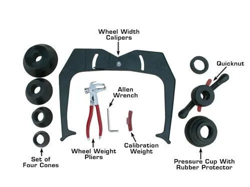 The "split-weight" feature allows the operator to "split" the correct amount of weight and "hide" these weights behind the spokes. The measuring guide rod is used to pinpoint the placement of the weights and the WB49's software determines the amount of weight that needs to be applied.