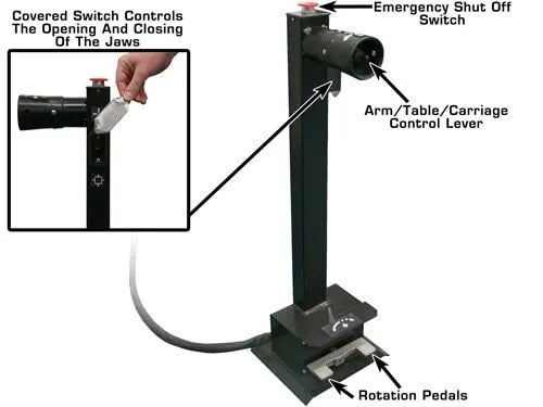 The portable control unit console allows the operator to safely monitor all tire changing operations from the correct angle.
