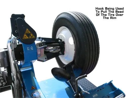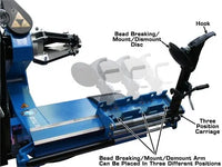 The bead breaker disc and the mount/demount head are combined into one quick change assembly to make the mounting and demounting procedures very easy.