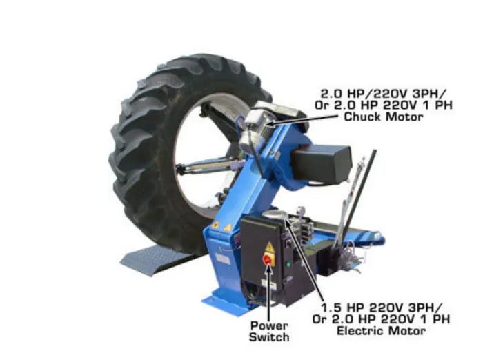 The powerful chuck 220 volt (+/- 5%, so 209-231 volts) single (1) phase motor and sophisticated hydraulic system delivers extraordinary torque and power to the Atlas TTC 303 truck tire changer. The 220 volt single (1) phase motor is the perfect choice for those tire stores where three (3) phase electricity is not available. Electrical voltage requirements are different in the USA compared to other countries. There may also be certain accessory items that need to be included for Europe, but are not needed in the USA.