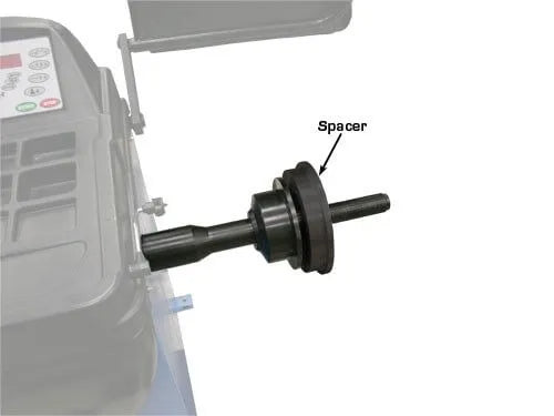 The Atlas large truck adapter set comes complete with a large steel cone, and a spacer. Most larger pick up wheels are a BUDD design wheel which means that the majority of the tire is positioned toward the inside of the rims. The spacer included with the Atlas® large truck adapter kit is used to "push" the wheel away from the machine, so that the rubber tire does not contact the balancer when the assembly is spinning.