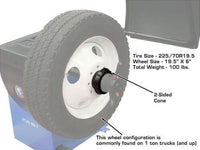 - The 2-sided cone allows wheel assemblies with center holes between 4-3/4" - 6-7/8" to be properly mounted on the wheel balancer shaft