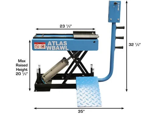 The Atlas WBAWL Stationary Pneumatic Wheel Lift is made with pneumatic technology which is designed to elevate and support different tire and wheel combinations up to a maximum weight of 150 lbs. Its innovative and sleek structure makes it to suitable with almost every wheel balancers available in the market.