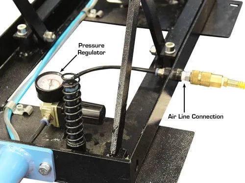 The Atlas WBAWL has several great features including three non-mar cone hangers which store the cones or quick release nut nearby. The WBAWL has four base mounted detent springs that ensures a controlled descent leveling speed. Finally, the base mounted air regulator helps to maintain the correct amount of pressure onto the pneumatic cylinder.
