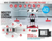 Autel ADAS All Systems 2.0 Package includes Standard Calibration Frame, ADAS software upgrade, compatible with MaxiSYS Tablet (not included) for calibration of LDW, ACC, Lidar, Radar, Night Vision, RCW, Lane Watch and AVM system calibrations on Alpha Romeo, Honda, Genesis, VW, Mercedes, Hyundai/Kia, Nissan, Infiniti, Mazda, Mitsubishi, Mazda, Subaru, Toyota/Lexus vehicles. Includes LDW Patterns/Targets for Alpha Romeo, Honda, VW, Mercedes, Hyundai/Kia, Nissan, Infiniti, Mazda, Mitsubishi, Mazda, Subaru, Toyota/Lexus; Includes Night Vision Calibrator Package for VW, Mercedes, GM; Includes Lidar Calibration for VW/Audi, Lexus, Toyota; Includes AVM patterns/systems for Hyundai/ Kia, Nissan, Mitsubishi, Toyota, VW, Honda, GM; Includes RCW patterns/package for VW, Nissan, Mercedes; Includes Expansion Pack for RCW, AVM, LIDAR, and NV system Calibrations; Includes Honda Lanewatch Target; Includes Pattern Board, Wheel Clamps and Laser Crossbar; Includes DIGITALADAS add-on for faster frame placement with one person; Includes LDW Target Case; Includes Target Board Holder and Includes a One-Year Limited Warranty.
