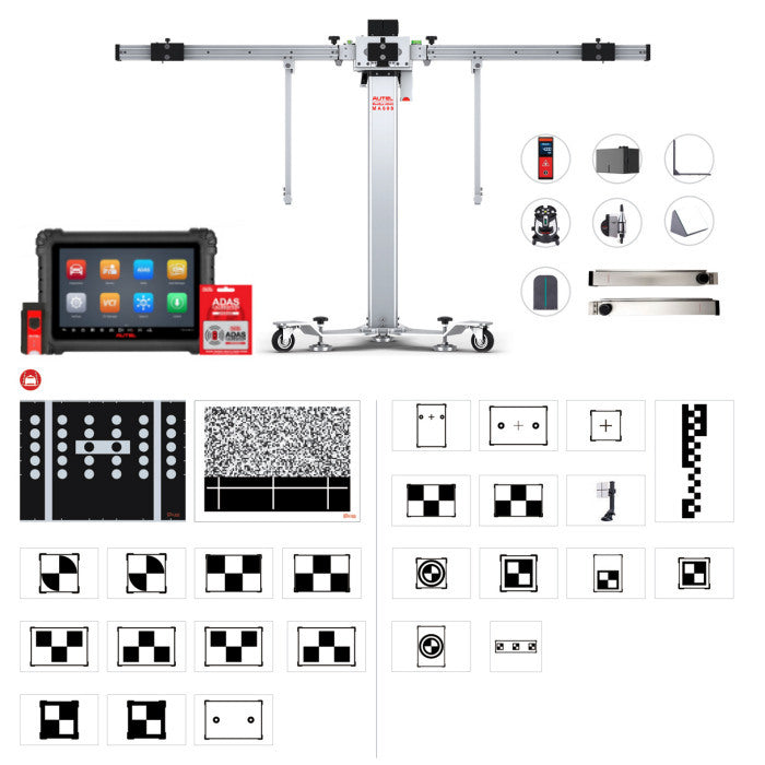 The MA600CORE2 is a comprehensive LDW calibration package that includes the Autel MA600 mobile ADAS calibration frame with crossbar extensions, MS906MAX advanced diagnostics tablet with ADAS calibration software upgrade and Bluetooth-enabled VCI200, LDW targets and patterns and vehicle positioning accessories. Includes LDW patterns for VW and Porsche and Subaru, and I LDW targets for Nissan, Infiniti, Mazda, Mitsubishi, Mercedes, Hyundai, Kia, Honda, Acura, Toyota and Lexus. The package also include vehicle positioning accessories including two- and five-line lasers, Laser Reflectors, L-bracket and digital tape measure. Package is covered by a one-year limited warranty.