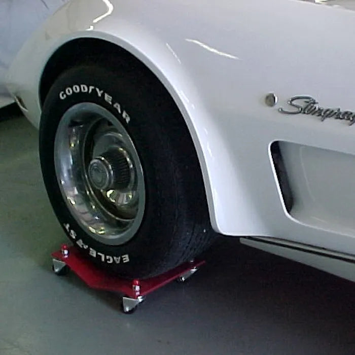 The Auto Dolly is placed under each tire of the vehicle, making the vehicle a rolling cart that will now roll in any direction with ease. The large roller bearing casters make it simple for anyone to move the vehicle in any direction. Each dolly has a 1,500 lbs. weight capacity. Put your car on skates and move it easily to save space in your garage. The Standard Duty Auto Dolly comes in three sizes: 8 inches, 12 inches, and 16 inches wide.The 16" Auto Dolly made by Merrick Machine Co. is perfect for your wide profile 'fat' tires and slicks. Some people get a set of four. Others get a pair for the back tires of their American muscle car, race car, or European exotic, while getting a standard pair for the front. Many dragster owners will get a pair of 16" for the back and a pair of 8" for the front.