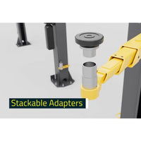 Double-telescoping screw adapters feature gouge and tear-resistant polyurethane pads that can be screwed up or down to ensure level lifting in all conditions. Provides more precise and secure frame engagement, ensuring technician safety. For greater vertical pad placement, we also offer OPTIONAL 2.5" and 5" stackable adapters for precise and safe vehicle support. The drop-in design allows for quick and easy use, and 2 column mounted racks keep the adapters neatly organized and secure.