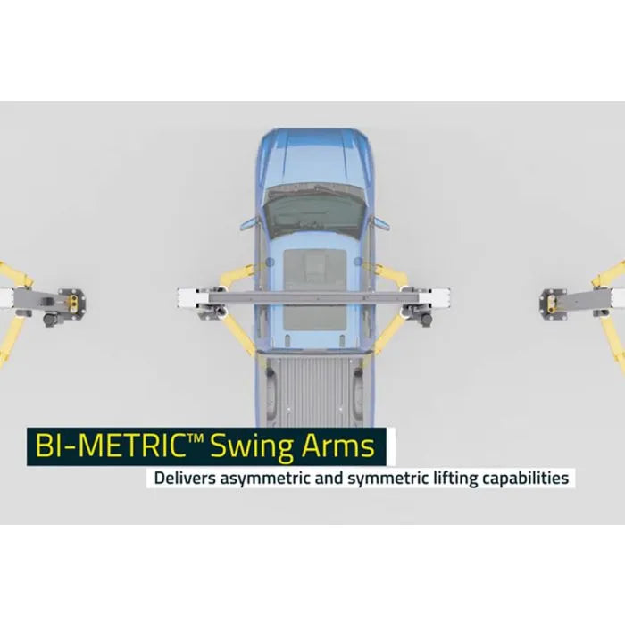 - Bi-Metric™ swing arms - give users the ability to set their lift up in either symmetric or asymmetric configurations. The 2-in-1 design gives installers and operators the option of loading vehicles either symmetrically (centerline of vehicle at column) or asymmetrically (centerline of vehicle behind column).