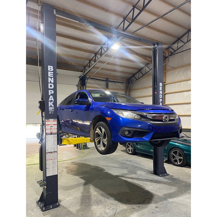 The BendPak 10APX Two Post Lift offers exceptional direct-drive lifting performance. This industrial-strength car lift guarantees cutting-edge technology, top of the line materials, a design that's ahead of its time and a 10,000-lb. lifting capacity. The 10APX Series offers the convenience of wide or narrow installation wrapped up into one configurable package. This durable, safe, and reliable car lift features an expandable top beam and BI-METRIC™ arms to suit virtually every vehicle lifting requirement - symmetric or asymmetric. The simple, yet highly sophisticated lift design keeps service and maintenance costs to a minimum, delivering lower operating expenses and higher productivity.
