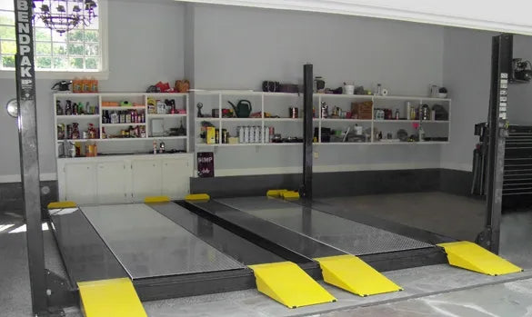 Are you looking for an economical answer to finding increased parking space? Are you looking for a true commercial quality four post garage lift that won't cost a fortune but doesn't sacrifice quality? If you answered yes to either of these questions, then you need one of the BendPak HD-9SWX commercial-grade double wide home / hobbyist four-post lifts. These garage lifts are perfect for the car enthusiast who wants to be able to store and service his vehicle without spending an outrageous amount of money, yet still maintain high quality.