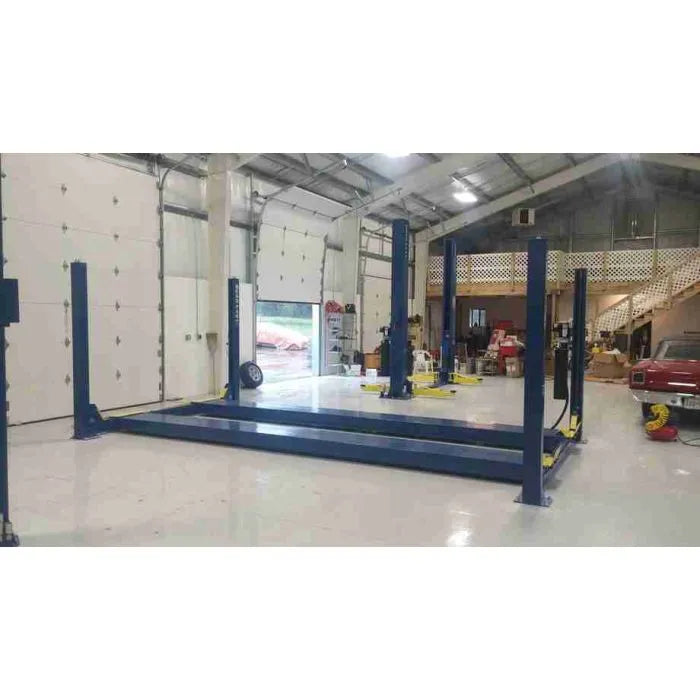The BendPak HDS-14XT Four Post Lift is a longer and taller version of the popular HDS-14. A longer four-post lift is useful for vehicles like limos, SUVs and trucks, and that’s where the HDS-14XT comes in handy. We call it our "limo style" lift because of how much front-to-back clearance it offers, so you can make it over or under the lift with ease. This lift adds additional versatility and craftsmanship to your garage.