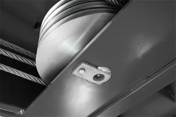 - Oversized cable sheaves are 12" in diameter - which extends cable life.