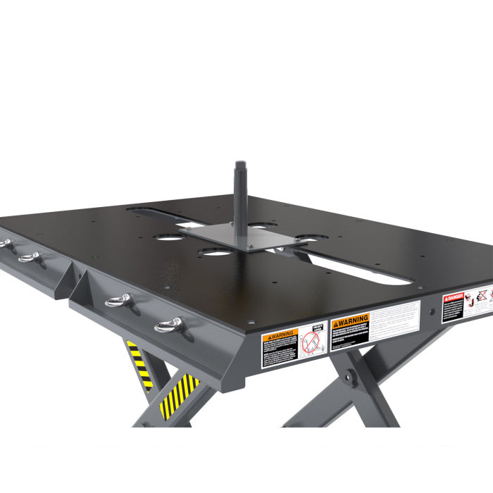 The BendPak EVS3000 and EVS4500 are multi-functional scissor-style lifts that feature sixteen recessed anchoring locations intended to accommodate a variety of accessories, modular fixtures, and adapters. Each can be repositioned or removed as applications dictate.