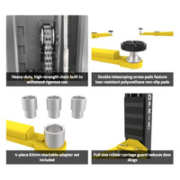 Positioning a vehicle correctly on a two-post lift can be frustrating, but the GP-10C eliminates the guesswork with advanced lifting features. Triple-telescoping front arms and dual-stage extended rear arms offer exceptional reach, accommodating a wide range of vehicles. The included double-telescoping screw pads and 4-piece stackable adapter set ensure secure, stable contact with every lift, no matter the frame design.