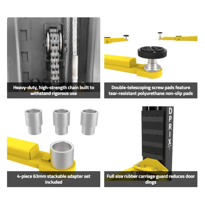 Engineered for professional shops and home garages alike, the GrandPrix GP-10C delivers the perfect combination of power, reliability, and efficiency. With a 10,000-lb. lifting capacity, this two-post lift is designed to handle everything from compact cars to full-size trucks. Its symmetric and asymmetric lifting capabilities provide flexible arm positioning, allowing you to work with ease on a variety of vehicle makes and models.