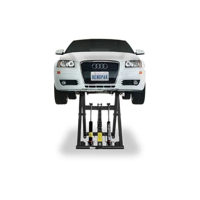 When it's time to add some much needed versatility and productivity to your professional shop or home garage, your first stop should always be a BendPak car lift. Our 6,000-lb. capacity mid-rise scissor lift is designed to fit nicely into narrower bays and won't take up much of your precious floor space. Thanks to its small footprint, even shops that don't suffer from small work areas will benefit from its ability to be placed just about anywhere without getting in the way. This state-of-the-art scissor lift comes well-equipped with adjustable arm assemblies and an all-important multi-position safety lock bar to give your lifting jobs the dynamic flexibility necessary for the best possible result. Easily and reliably adjust your lift to any secure position.The true benefit of the mid-rise lift series, however, is their portability. Each car lift features a portable power unit and cart, so wherever you need to work is where your mid-rise lift will be. And since they are designed specifically to engage a vehicle's frame, the mid-rise lift offers a seamless lifting experience. Your BendPak comes with a free set of truck adapters. It's just another way that BendPak maximizes your garage's full potential. You can always trust BendPak for increased durability, safety and productivity.