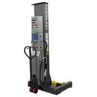 Durable, versatile and simple to use, the PCL‐18B features an ergonomic steering control with a built‐in hydraulic‐jack that elevates the lift assembly in seconds and reduces operator fatigue and downtime. A 180‐degree handle with familiar pallet‐jack controls provides exceptional maneuverability in compact areas. Tandem 8” diameter polyurethane covered steel wheels with sealed roller bearings easily roll over dirt and debris. With an effortless three strokes of the handle, the lift column is raised off the floor for instant portability. Once the column is positioned, the convenient spring‐loaded handle returns efficiently to the upright position automatically. In the event the lift is raised with the steering wheels in the elevated position, an overload bypass valve protects the steering control unit *outdoor use only if covered and dry