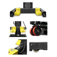 - Multi-width wheel forks with locking pins accommodate the widest range of wheels, eliminating the need for specialty wheel adapters