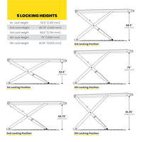 - Extra‐wide, heavy‐duty steel scissor arms with cross member bracing enhance stability