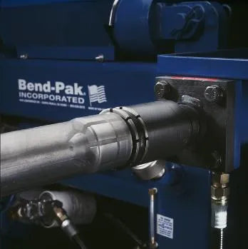 BendPak pipe benders, fitted with an extended-length, 14” top cylinder, do not require the use of pusher block extensions for small-radius die jobs. Additionally, the cylinder can be retracted, offering more clearance for die-changing, as well as the removal of bent tubes.