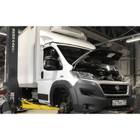 The XPR-12FDL is a stout truck and car hoist. This super heavy duty piece of auto shop equipment has got everything you need: premium quality components, state of the art technology, and the best design on the market. With it's heavy duty 12,000 lb lifting capacity, it is more than capable of lifting not only automobiles, but larger trucks as well. It is an open top model, so if you have a shorter ceiling, it's no problem, as long as your ceiling is 13 feet or greater. It's also suitable for raising taller trucks and vans without worrying about tripping a shut-off bar above, like you would on a clear-floor model.