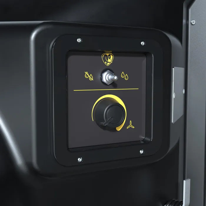 - Water Supply: Accepts standard garden hose or portable supply tank, water regulated by float valve, built-in reservoir for extended use, low water shutoff for pump longevity