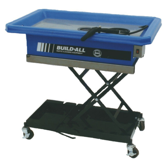 The Build-All PL6 is a 5-7 gallon recirculating high density polyethylene aqueous work surface brake washer. This recirculating brake washer is designed to clean brake components with aqueous based cleaning agents. It comes included with a flow-thru brush that provides a continuous flow of solvent through the bristles, providing a thorough cleaning of parts.