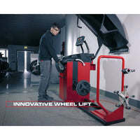 The CEMB C330 Digital Automatic Truck Wheel Balancer is designed for operating on truck, bus and car wheels up to 550 lbs. The innovative lowering spindle shaft which adjusts in height guarantees safe and easy centering even for large wheels, thus making it easier and safer for the operator. The modern and attractive design, with sturdy weight-tray, improved space optimization and the wide availability of programs, make it the most complete solution in its category. Innovative Wheel Lifting Spindle