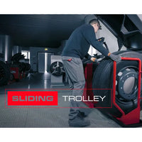 The sliding trolley, with a height of only 59 mm, the lowest available on the market, allows a faster and easier loading of the wheel, with reduced effort for the operator.