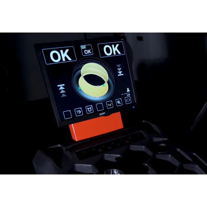 - Once the measuring launch is completed, thanks to the Automatic Approach system, the wheel automatically stops around 15° from the exact point of application of the counterweight, allowing the operator to position it correctly with a little movement.