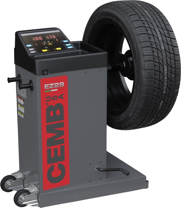 EZ29 Portable wheel balancer from CEMB was designed with portability and features in mind. It will operate on standard 110V AC voltage as well as 12V DC. It comes with many features including automatic entry, split weight program, quick nut mounting, etc. Being portable with wheels and standard lightweight battery pack it can be used for mobile service or brought to the vehicle or wheels wherever they may be. The EZ29 mobile wheel balancer comes fully assembled.