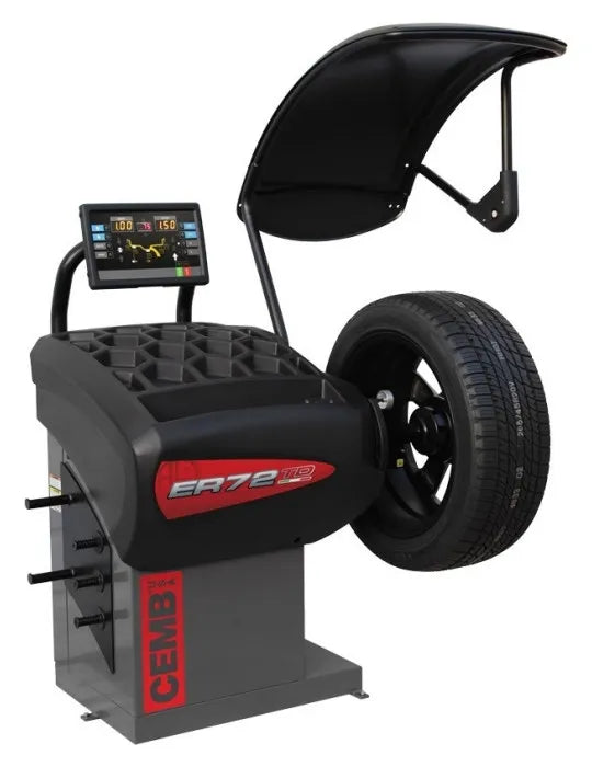 The CEMB Digital Wheel Balancer ER72TD is made especially for busy tire shops. This new series has the latest technology in wheel balancing, "Spotter" lasers that actually pinpoints the exact location of stick-on wheel weights. This is done with little or no chance of operator error when entering dimensions (major cause of check spin errors).Full Time Static on screen for a perfect balance. The automatic arm measures diameters up to 30", automatic entry of the dimensions with width sonar 3D. It comes fully assembled.
