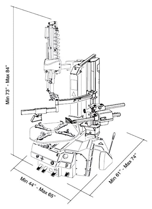 - Machine Dimensions: 44-65" W x 73-84" H x 61-74" D