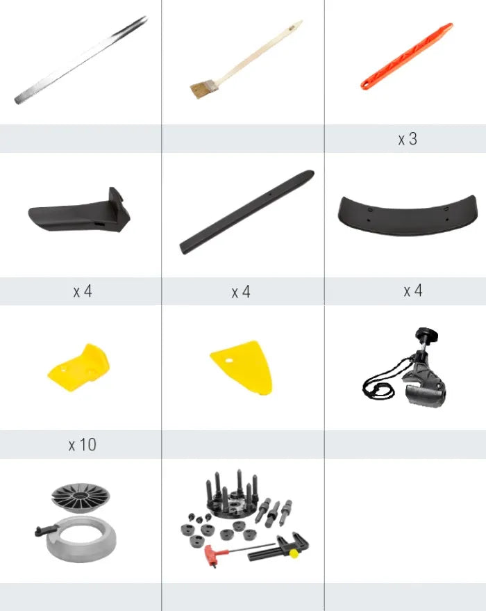 Bead Pressing System - The new standard supplied independent floating bead presser is recommended to operate on Run-Flat and UHP tires. Particularly efficient on reverse rims thanks to the height of the tool, which can be easily reduced.