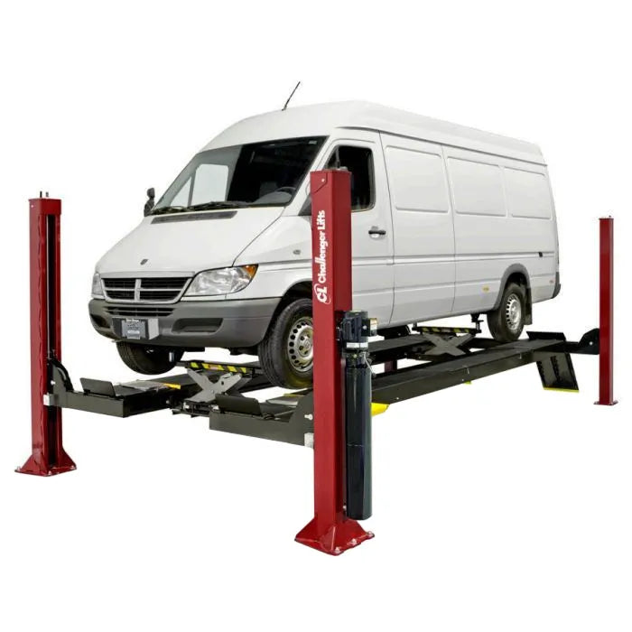 Designed with productivity and safety in mind, our newly improved 15,000 lb Four Post Lift would be a great addition to any shop floor. With several configurations available, you’re sure to find the lift to meet your needs. Increase your customer base with this lift as it can accommodate and service a wide range of vehicles. Anything from a small passenger car to a medium-duty truck, and even medium-sized vans. All while boosting workplace safety with our open front design, assisting technicians moving around a vehicle's frame. Challenger Lifts' 15,000 lb. four post automotive lifts are the complete package for expanding your service offering and revenue potential. The 4115 series comes in several productivity configurations including open and closed front general service flat decks and alignment rack packages also available. With the 4115 Series, you'll be able to service small passenger cars and medium duty trucks, vans and fleet vehicles.