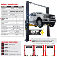 Challenger Lifts CL10AV3-2 Versymmetric Adjustable Two Post Lift
