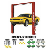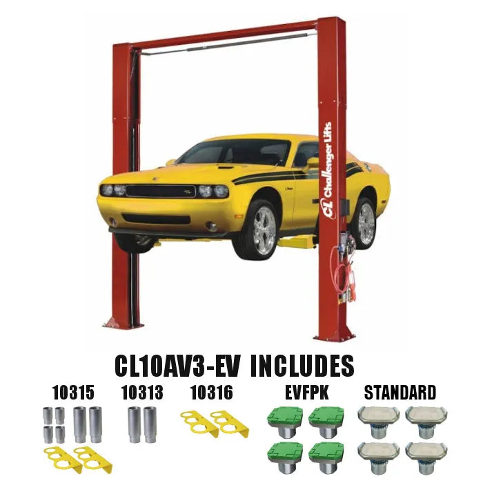 The Challenger Lifts CL10AV3-2 Versymmetric Adjustable Two Post Lift is designed with versatility and convenience in mind, offering three adjustable widths and two adjustable heights to suit the unique needs of your garage or shop. Featuring Versymmetic Technology, these innovative lifts allow you to service the broadest range of vehicles, significantly enhancing your shop's capability and, most importantly, your bottom line. With it's 3-stage front and rear arms equipped with the pioneering directSPOT design, the days of shuffling a vehicle back and forth to position the front arms properly are over. Now, you can achieve accurate first-try spotting every time, reducing frustration in your shop and skyrocketing your productivity. Challenger Lifts CL10AV3-2 is ALI and ETL Certified. As of 04/21/25, the CL10AV3-2 features a new Bucher Power Unit which will only require a 20 Amp Breaker. Scroll down for more details.