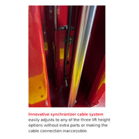 Innovative synchronizer cable system, easily adjusts to any of the three lift height options without extra parts or making the cable connection inaccessible.