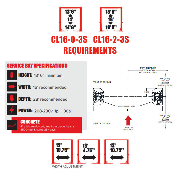 The CL16-3S has the capacity and height required to symmetrically lift service trucks and 3-stage front and rear arms to lift smaller vehicles asymmetrically. Additionally featuring low profile pickup pads and an adjustable width and height. 2ft height extensions are available for additional clearance.