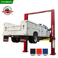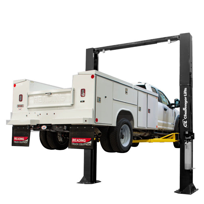 Challenger Lifts CL20-0 Heavy-Duty Two Post Lift boasts optimum flexibility with a lift designed from the anchors up to meet ALI/ANSI safety standards. The CL20-0 is specifically engineered for vehicles weighing up to 20,000 lbs. Our lift is wider and taller, providing a robust and durable option for your fleet maintenance needs. The heavy-duty two stage arms ensure stability during lifting, while the adjustable width makes it suitable for various vehicle sizes. The optional 2' column extensions allow your shop to handle even taller vehicles. This versatile lift is essential for any fleet maintenance operation. With adjustable columns and superior strength, this lift is your ultimate lifting solution for heavy-duty vehicles. Challenger Lifts CL20-0 is ALI and ETL Certified.
