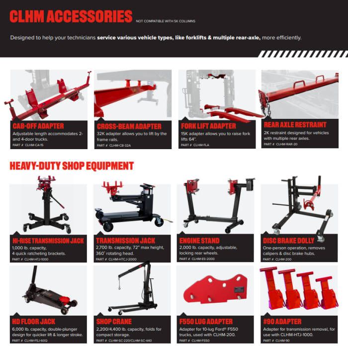 - Wide Range Of Accessories Available To Further Customize Your Columns To Lift Specialty Heavy-Duty Trucks, Transit And Municipality Vehicles, Forklifts, Cab Removal Of Standard Pickup Trucks And More