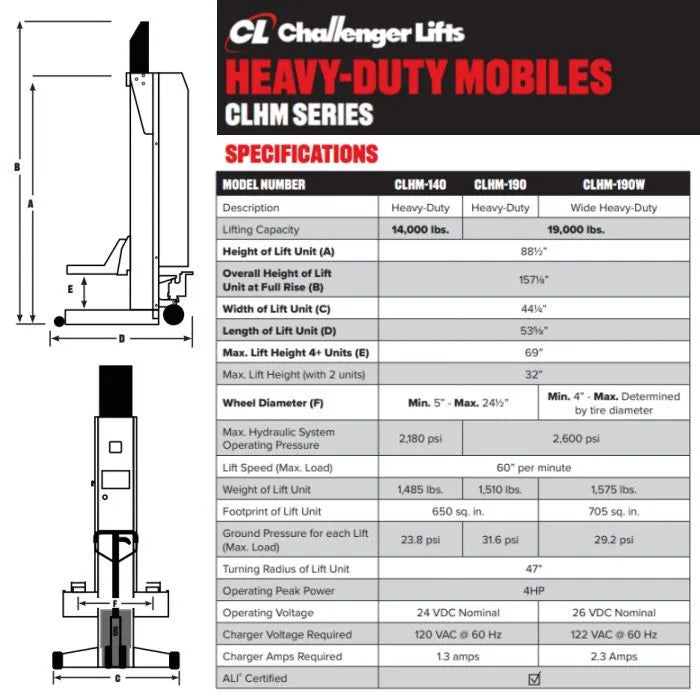 Challenger Lifts CLMM-5000 Mobile Column Lift Spec Sheet (.pdf)