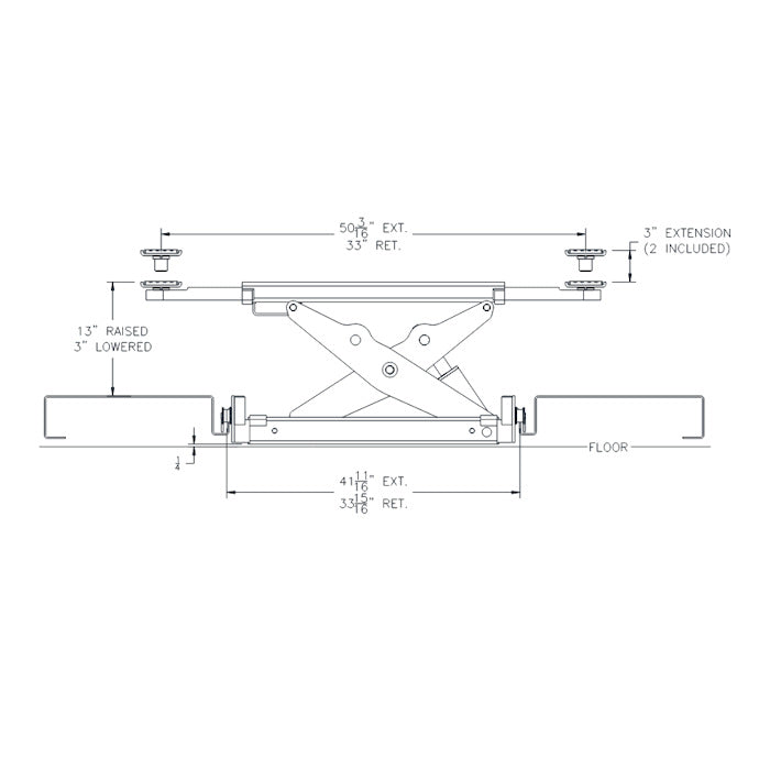 The Challenger 7,000 and 9,000 lbs. four post lifts are basically a smaller version of their larger brothers, the 14,000 up to 30,000 pound capacity models so they feature the rail kit on the inside edge of the runways. This allows you to place a variety of various accessories there, including drip trays and oil drains, but the most popular by far is the hydraulic powered rolling bridge jack. This is a commercial quality rolling jack, not like the typical hydraulic sliding jacks available for many home - hobby lifts out on the market these days. It has a full 3,500 lbs. capacity, and rolls effortlessly up and down the length of the runways. So you can get one jack, and use it on one axle at a time, or get two rolling jacks, and have full service capabilities, including tire rotations. Make sure your 4 post lift is a full service lift, for access to wheels for brake, tire and wheel work. Any time you need to take the wheels off the vehicle you are servicing, you'll be glad you got one. Sure, you can get by with the more affordable jack plate option, but if you can afford a rolling jack, service will be so much quicker and easier. (Air kit is optional to convert to air powered).